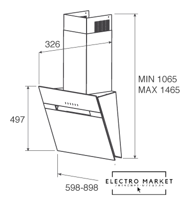 конструкция скрытая, монтаж настенный/для встраивания, ширина 54 см, управление электронное/кнопочное, производительность вытяжки 580 м³/ч, цвет черный