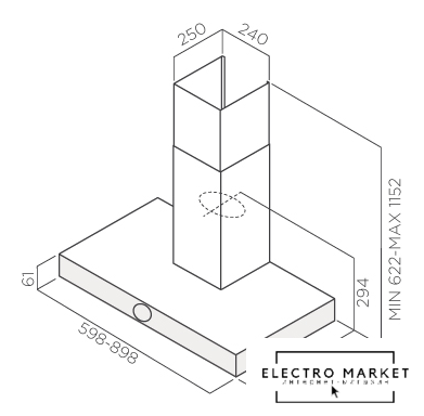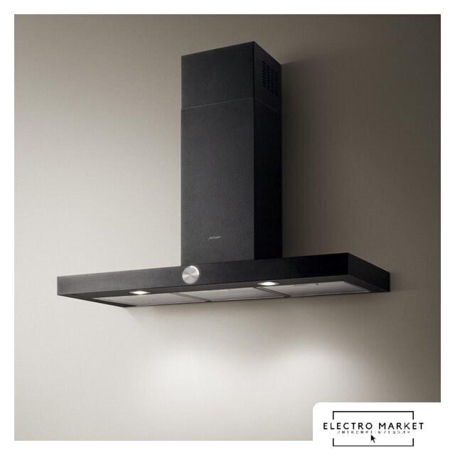 конструкция коробчатая, монтаж островной, ширина 38 см, управление механическое/кнопочное, производительность мотора 1000 м³/ч, цвет черный