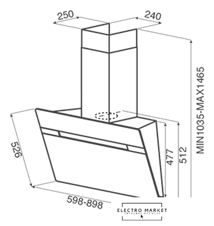 конструкция наклонная, монтаж настенный, ширина 89 см, управление сенсорное, производительность мотора 1000 м³/ч, цвет белый