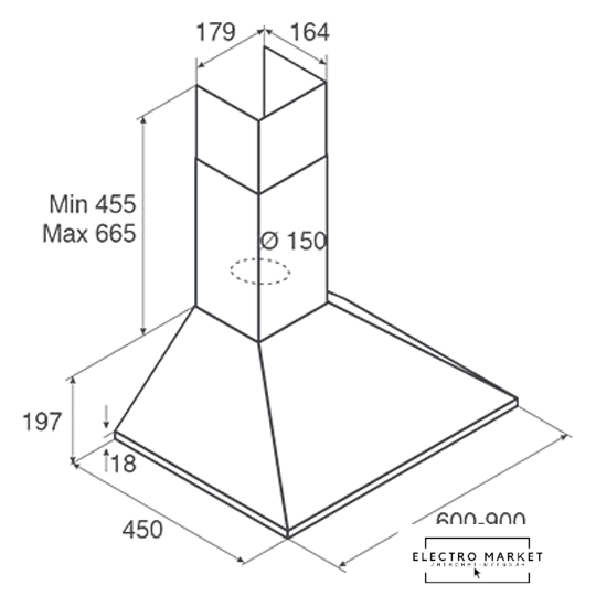 конструкция Т-образная, монтаж настенный, ширина 89.6 см, управление механическое/кнопочное, производительность мотора 650 м³/ч, цвет белый