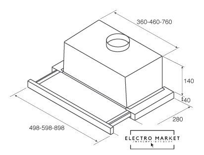 конструкция наклонная, монтаж настенный, ширина 49.8 см, управление механическое/кнопочное, производительность мотора 650 м³/ч, цвет черный