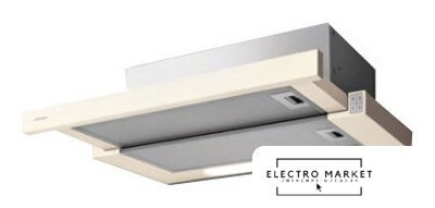 конструкция наклонная, монтаж настенный, ширина 59.6 см, управление механическое/кнопочное, производительность мотора 840 м³/ч, цвет белый