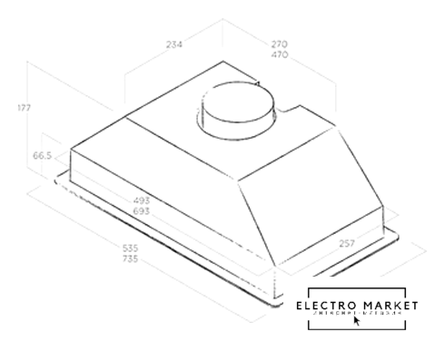 конструкция скрытая, монтаж для встраивания, ширина 72.5 см, управление механическое/кнопочное, производительность мотора 1050 м³/ч, цвет белый