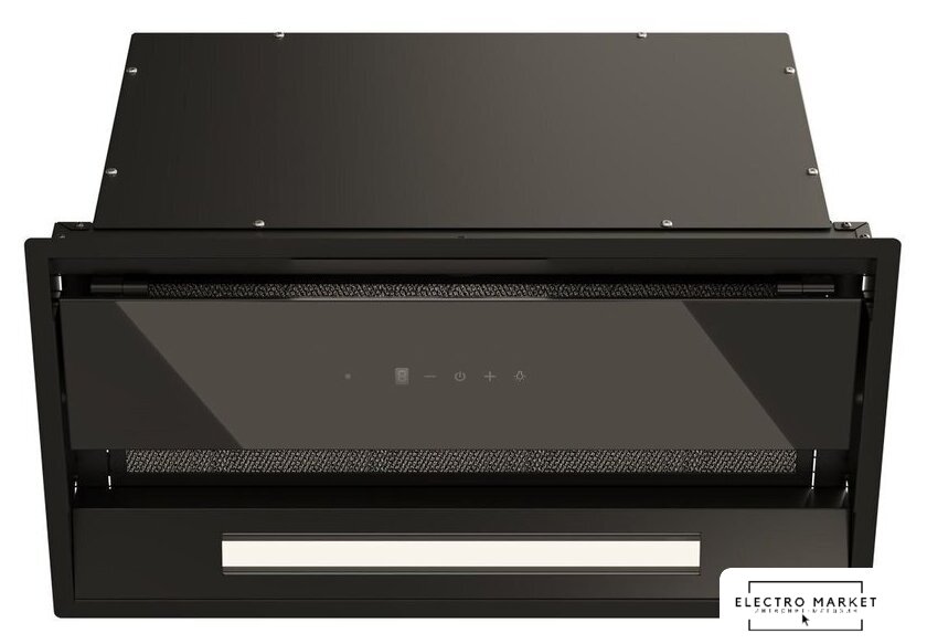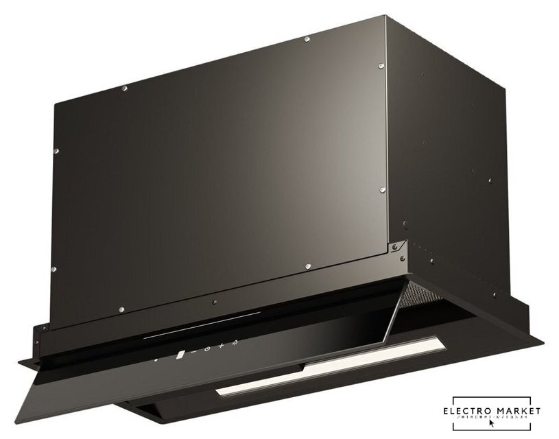 конструкция наклонная, монтаж настенный, ширина 59 см, управление сенсорное, производительность мотора 700 м³/ч, цвет черный