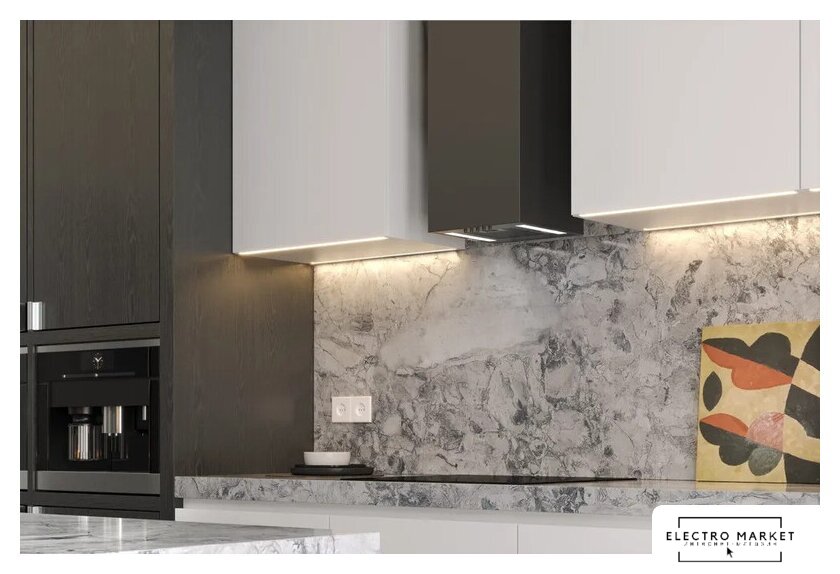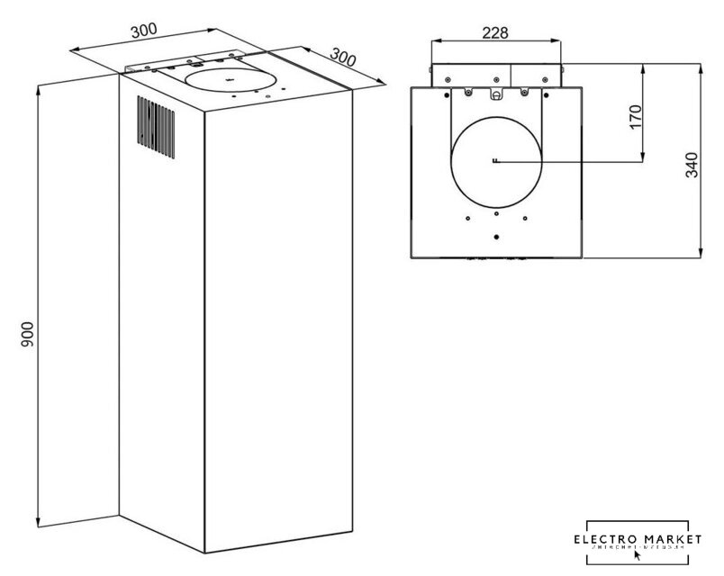 конструкция коробчатая, монтаж островной, ширина 35.15 см, управление электронное/кнопочное, производительность мотора 1050 м³/ч, цвет нержавеющая сталь