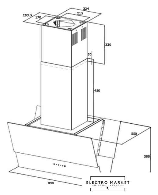 конструкция скрытая, монтаж для встраивания, ширина 54 см, управление электронное/кнопочное, производительность вытяжки 450 м³/ч, цвет нержавеющая сталь