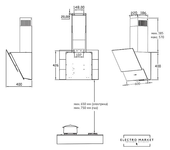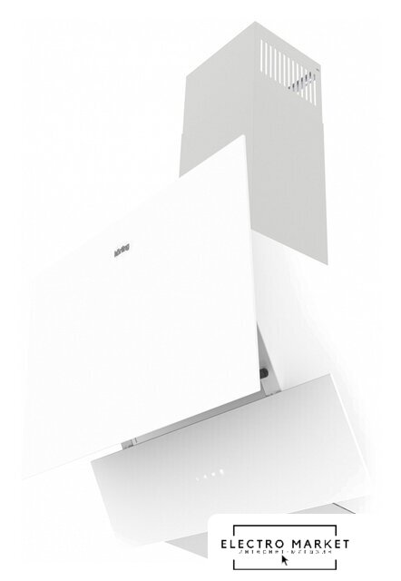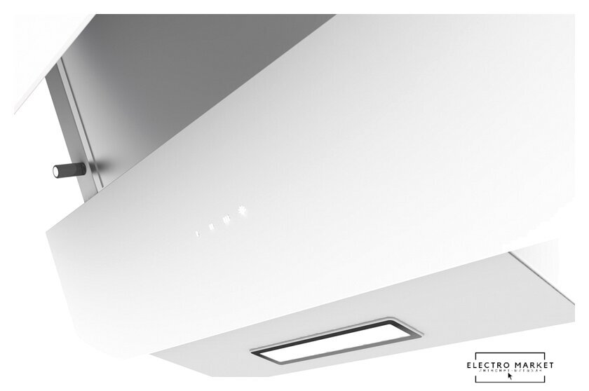 конструкция наклонная, монтаж настенный, ширина 60 см, управление сенсорное, производительность мотора 1050 м³/ч, цвет белый