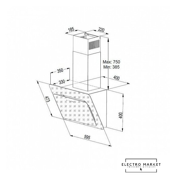конструкция Т-образная, монтаж настенный, ширина 60 см, управление сенсорное, производительность мотора 950 м³/ч, цвет черный
