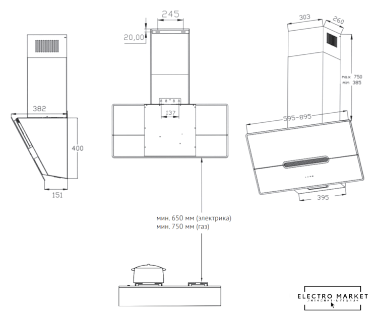 конструкция коробчатая, монтаж островной, ширина 35.15 см, управление сенсорное, производительность мотора 900 м³/ч, цвет нержавеющая сталь