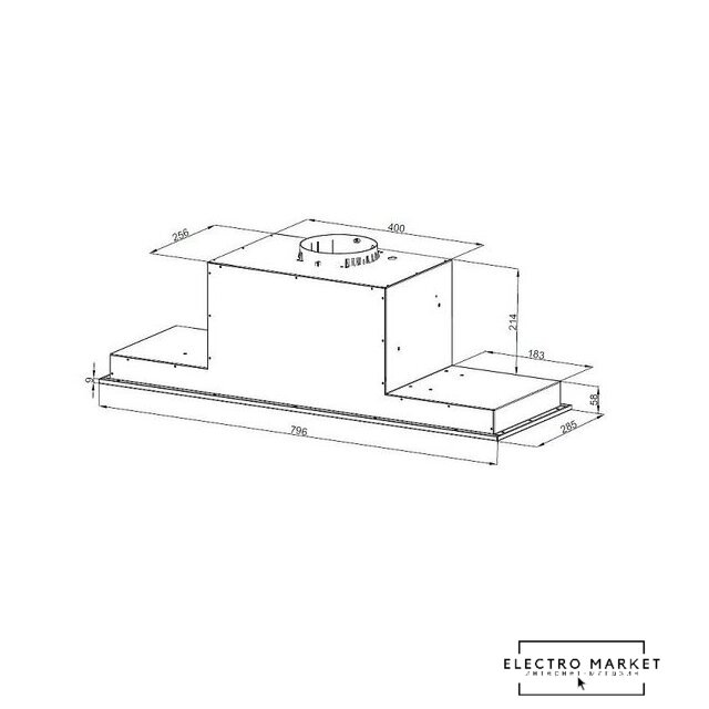конструкция Т-образная, монтаж настенный, ширина 59.8 см, управление механическое/кнопочное, производительность вытяжки 368 м³/ч, производительность мотора 700 м³/ч, цвет нержавеющая сталь