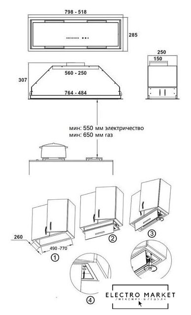 конструкция наклонная, монтаж настенный, управление механическое/кнопочное, производительность мотора 700 м³/ч, ширина 60 см