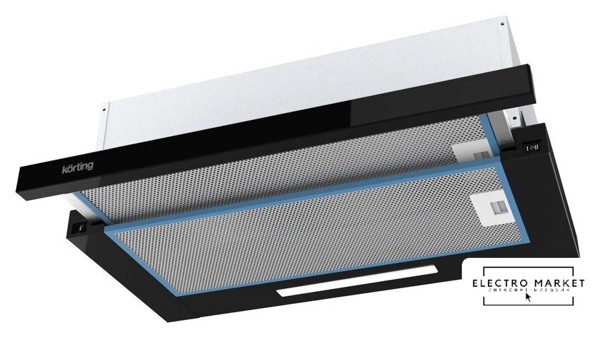 конструкция телескопическая, монтаж для встраивания, ширина 60 см, управление механическое/кнопочное, производительность мотора 600 м³/ч, цвет нержавеющая сталь/черный