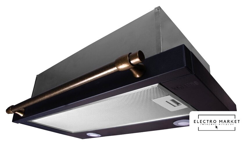 конструкция купольная, монтаж настенный, ширина 89 см, управление механическое/кнопочное, производительность мотора 650 м³/ч, цвет антрацит/бронзовый