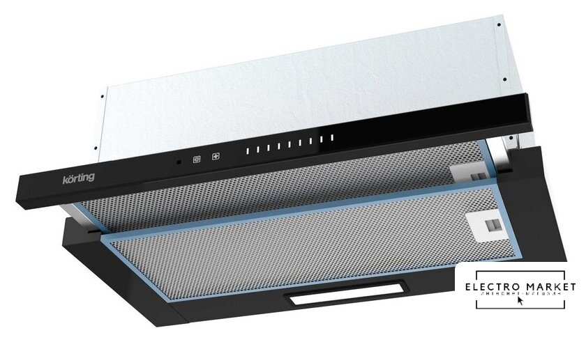 конструкция скрытая, монтаж для встраивания, ширина 59.8 см, управление сенсорное, производительность мотора 1200 м³/ч, цвет черный