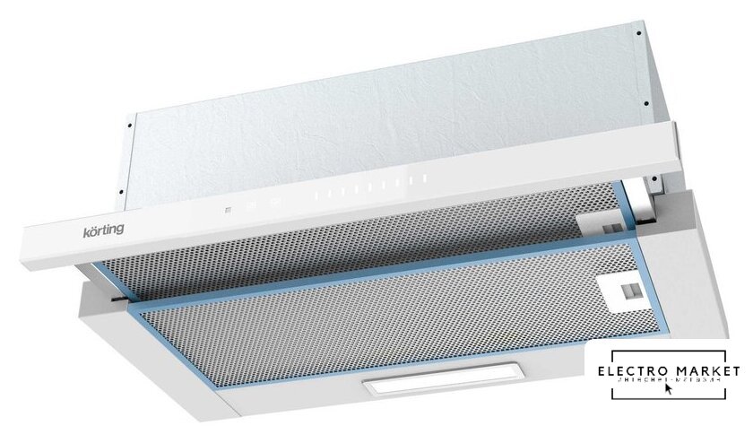 конструкция телескопическая, монтаж для встраивания, ширина 89.8 см, управление механическое/кнопочное, производительность мотора 800 м³/ч, цвет белый/нержавеющая сталь