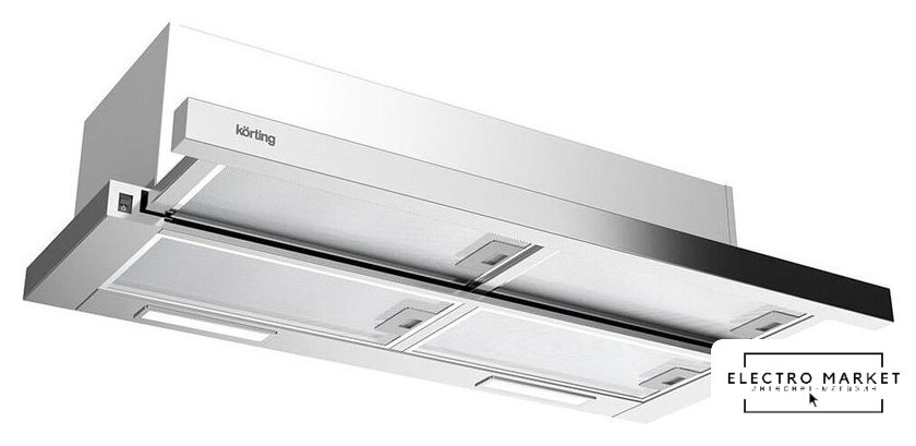 конструкция коробчатая, монтаж настенный, ширина 90 см, управление механическое/кнопочное, производительность мотора 550 м³/ч, цвет черный
