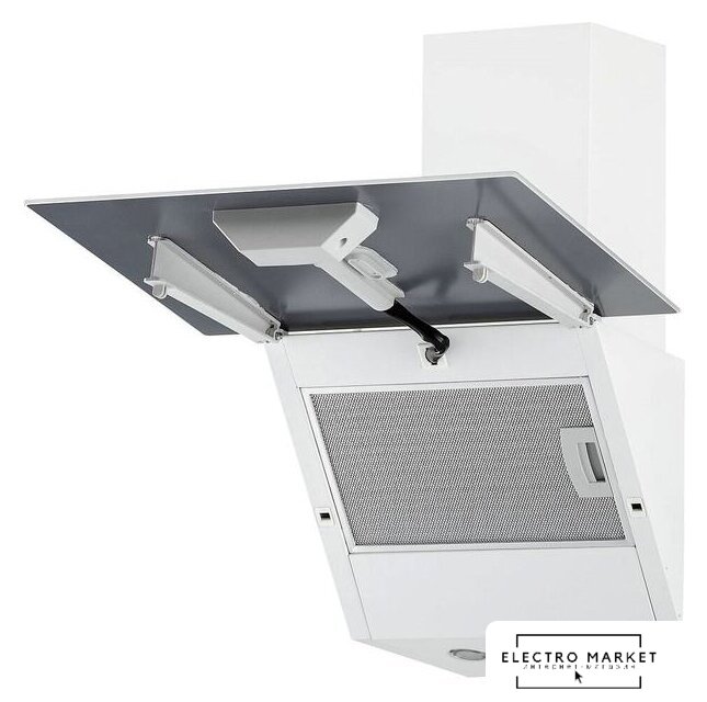 конструкция наклонная, монтаж настенный, ширина 59.5 см, управление сенсорное, производительность мотора 750 м³/ч, цвет белый