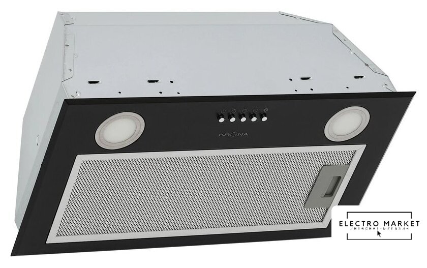 конструкция наклонная, монтаж настенный, ширина 59.5 см, управление механическое/кнопочное, производительность мотора 900 м³/ч, цвет черный