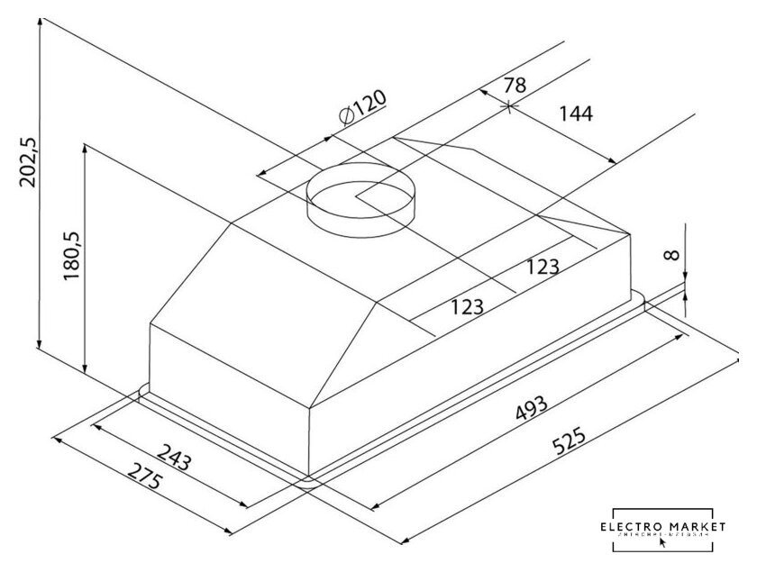 монтаж настенный, ширина 60 см, управление кнопочное, производительность вытяжки 600 м³/ч