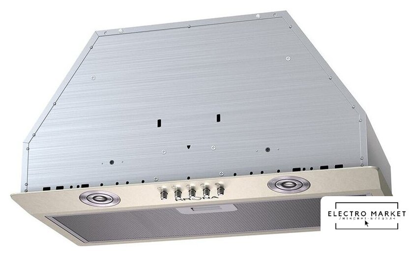 конструкция купольная, монтаж настенный, ширина 60 см, управление механическое/кнопочное, производительность мотора 650 м³/ч, цвет кремовый