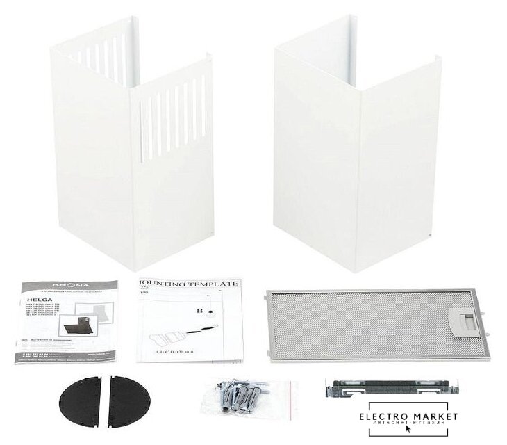конструкция скрытая, монтаж для встраивания, ширина 52 см, управление механическое/кнопочное, производительность мотора 1010 м³/ч, цвет белый