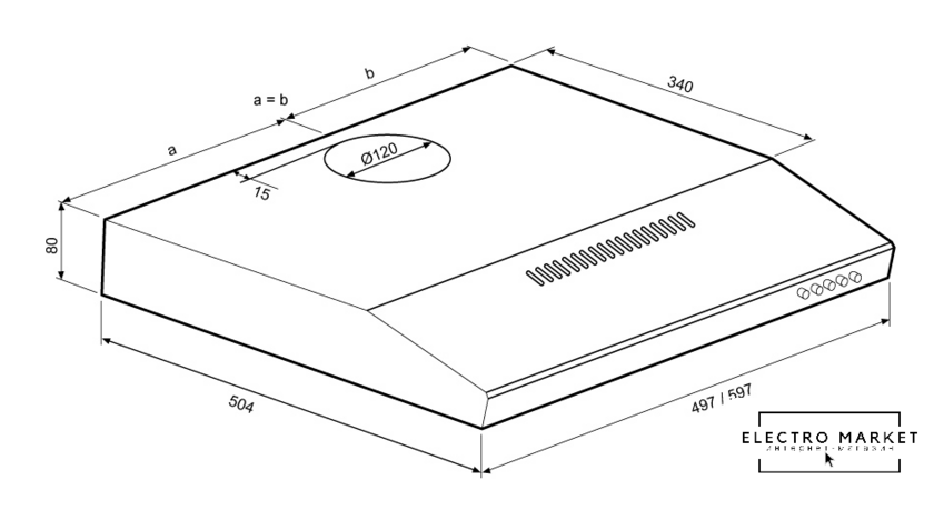 конструкция наклонная, монтаж настенный, ширина 60 см, управление электронное/сенсорное, производительность вытяжки 450 м³/ч, производительность мотора 900 м³/ч, цвет нержавеющая сталь/черный