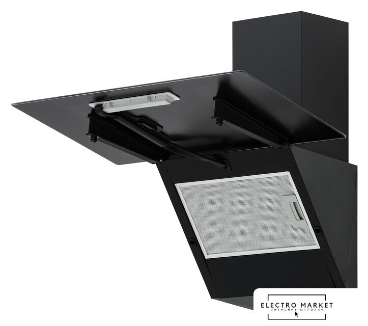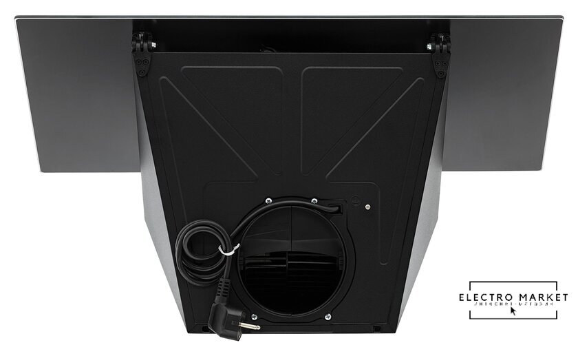 конструкция скрытая, монтаж для встраивания, ширина 53.5 см, управление механическое/кнопочное, производительность мотора 750 м³/ч, цвет черный