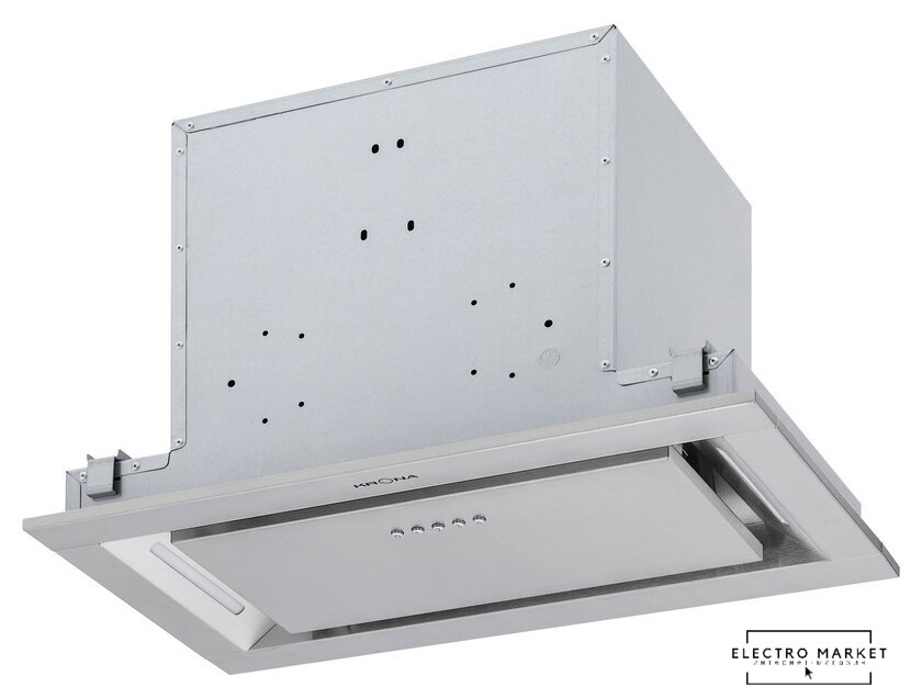 конструкция скрытая, монтаж для встраивания, ширина 59.6 см, управление механическое/кнопочное, производительность мотора 1000 м³/ч, цвет белый