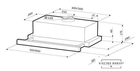 конструкция скрытая, монтаж для встраивания, ширина 59.8 см, управление механическое/поворотный переключатель, производительность мотора 850 м³/ч, цвет черный