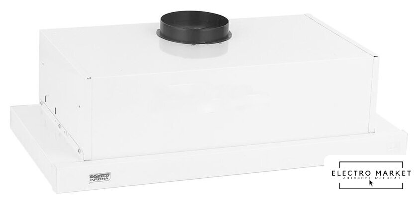 конструкция скрытая, монтаж для встраивания, ширина 59.6 см, управление сенсорное/жестами, производительность мотора 1200 м³/ч, цвет белый