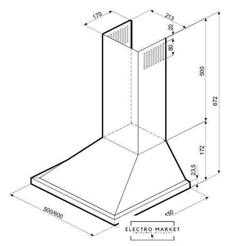 конструкция телескопическая, монтаж для встраивания, ширина 49.8 см, управление механическое/кнопочное, производительность вытяжки 336 м³/ч, производительность мотора 650 м³/ч, цвет нержавеющая сталь/серый