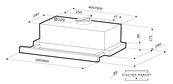 конструкция купольная, монтаж настенный, ширина 50 см, управление электронное/кнопочное, производительность мотора 900 м³/ч, цвет белый
