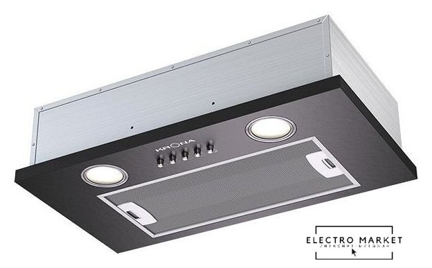 конструкция телескопическая, монтаж для встраивания, ширина 59.8 см, управление механическое/кнопочное, производительность мотора 550 м³/ч, цвет нержавеющая сталь