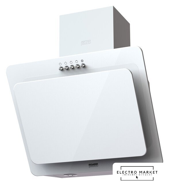 конструкция наклонная, монтаж настенный, ширина 60 см, управление сенсорное, производительность мотора 900 м³/ч, цвет белый