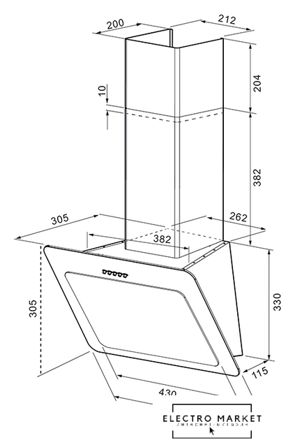 конструкция наклонная, монтаж настенный, ширина 60 см, управление механическое/кнопочное, производительность мотора 900 м³/ч, цвет черный