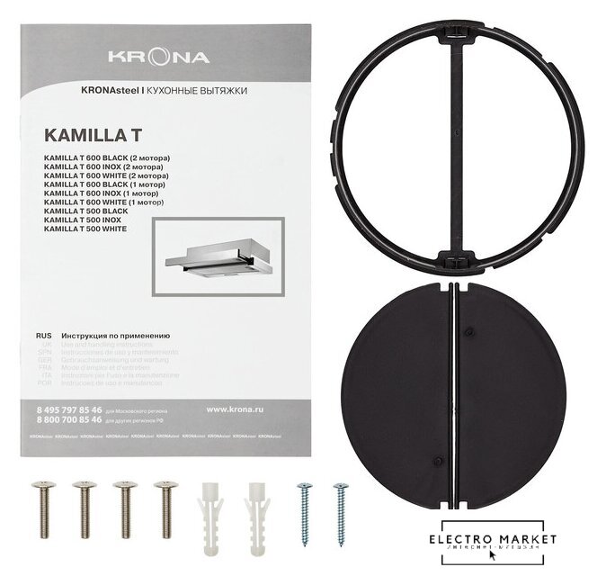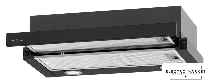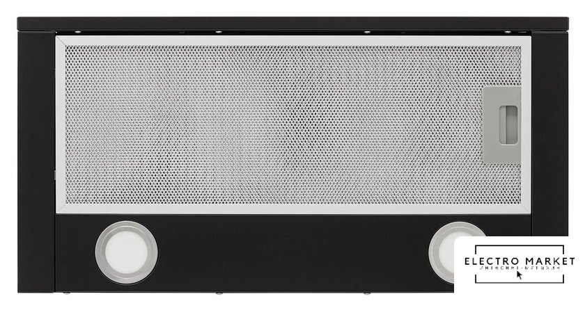 конструкция телескопическая, монтаж для встраивания, управление механическое/кнопочное, производительность мотора 390 м³/ч, ширина 60 см