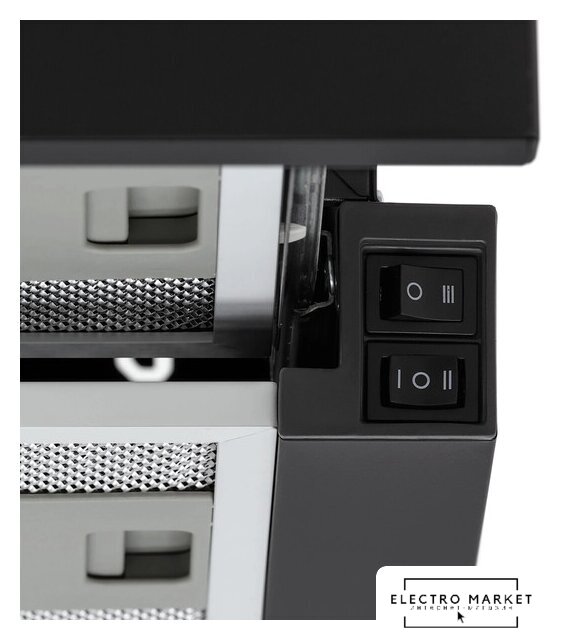 конструкция наклонная, монтаж настенный, ширина 60 см, управление электронное/сенсорное, производительность вытяжки 450 м³/ч, производительность мотора 900 м³/ч, цвет черный