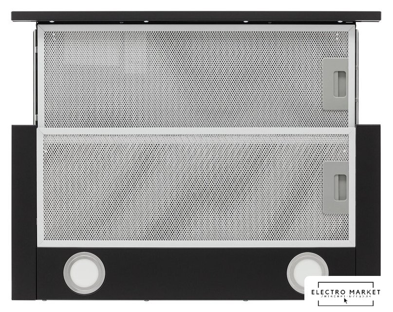 конструкция телескопическая, монтаж для встраивания, управление механическое/кнопочное, производительность мотора 650 м³/ч, ширина 59.8 см