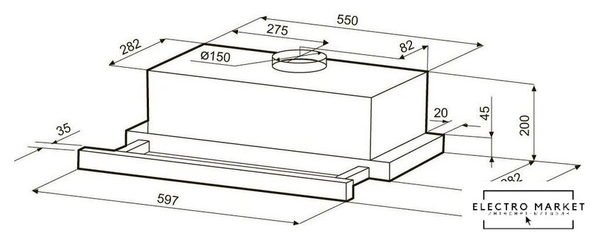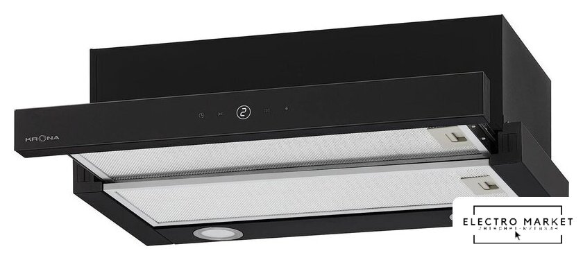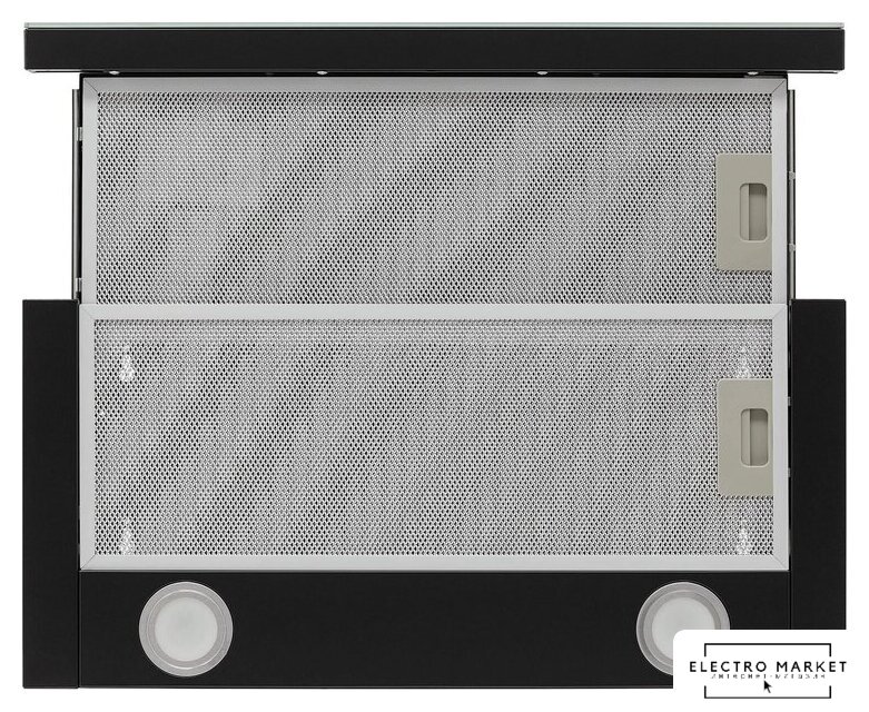 конструкция телескопическая, монтаж для встраивания, ширина 60 см, управление механическое/кнопочное, производительность вытяжки 177 м³/ч, производительность мотора 520 м³/ч, цвет черный