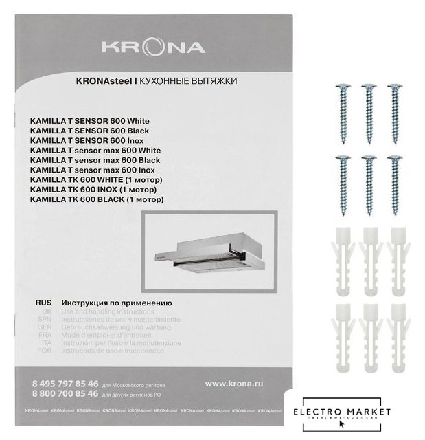 | Комплектация | шнур с вилкой 1.3 м, комплект крепежа, инструкция |