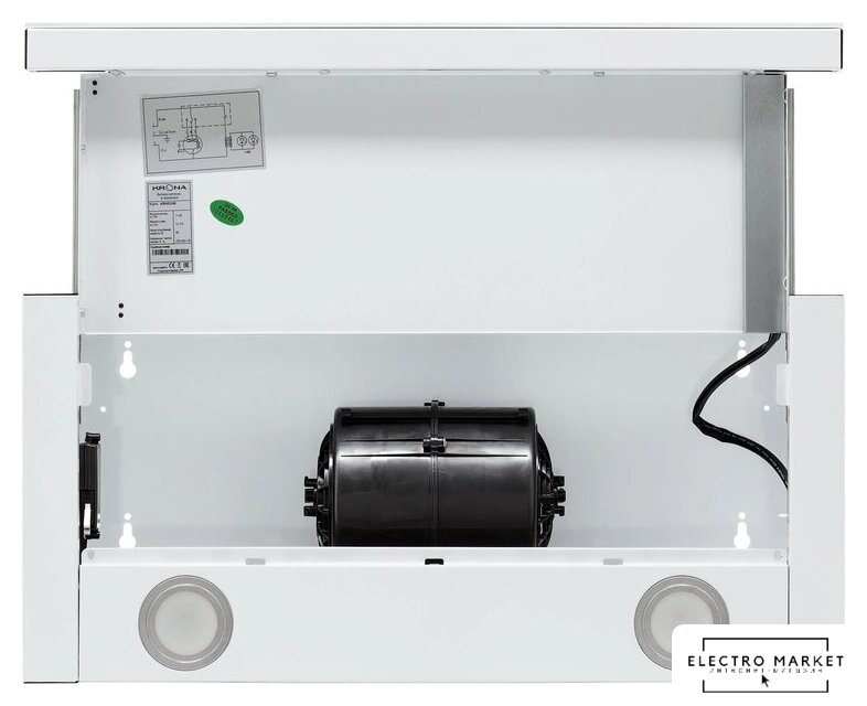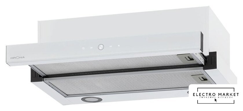 конструкция скрытая, монтаж для встраивания, ширина 52 см, управление сенсорное, производительность мотора 1050 м³/ч, цвет белый