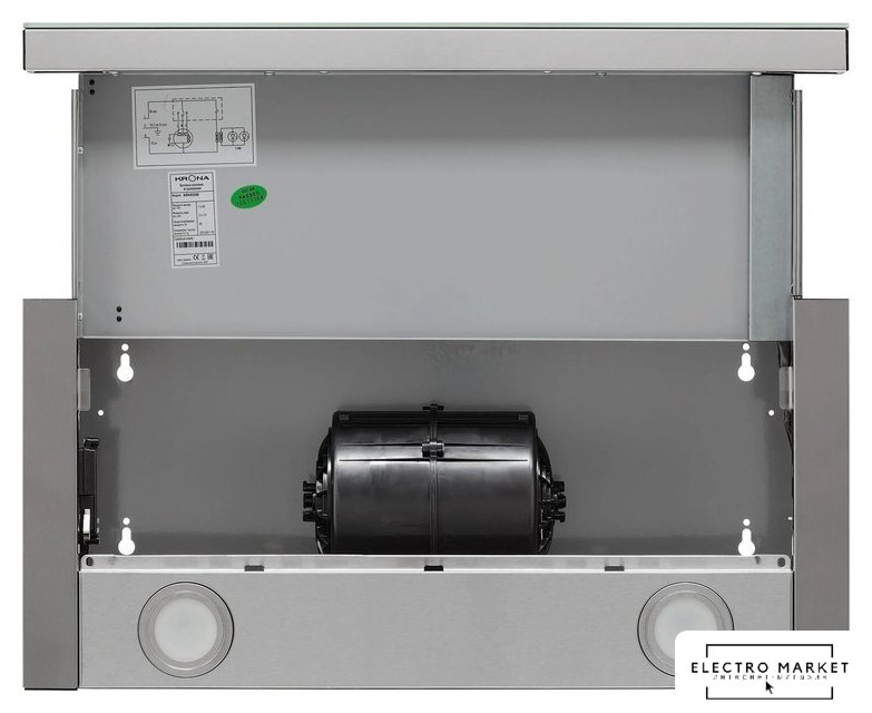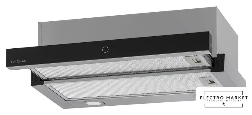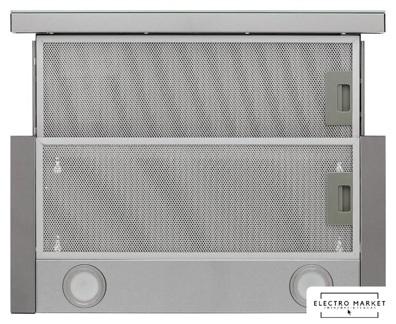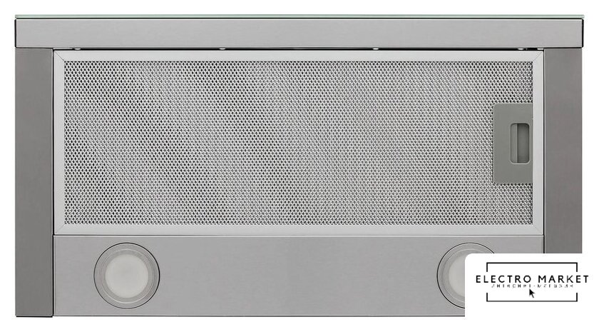 конструкция скрытая, монтаж для встраивания, ширина 52 см, управление механическое/кнопочное, производительность мотора 650 м³/ч, цвет черный