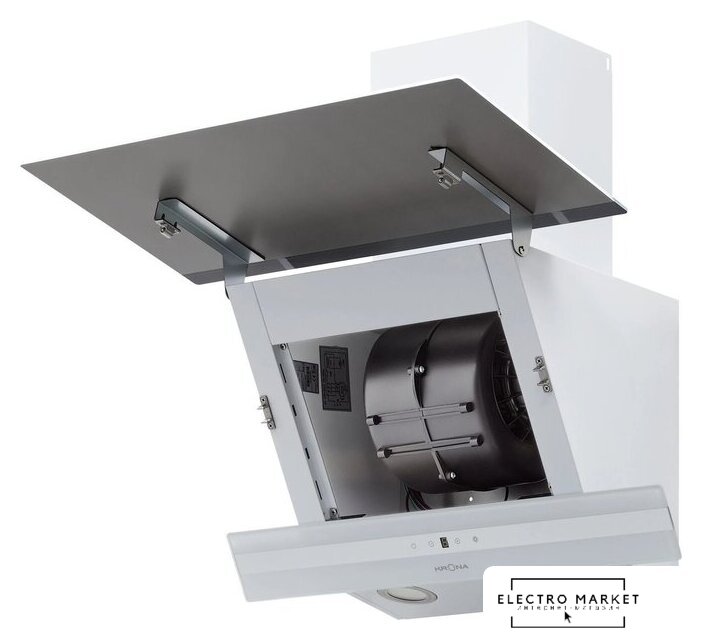 конструкция наклонная, монтаж настенный, ширина 59.5 см, управление механическое/кнопочное, производительность мотора 650 м³/ч, цвет черный