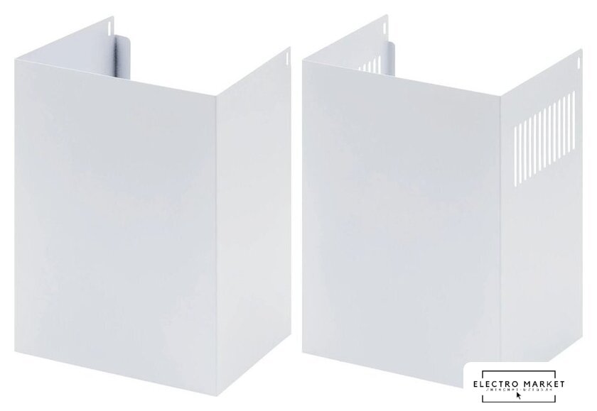 Комплектация | декоративный короб воздуховода вытяжки – 2 шт., евровилка со шнуром 120 см, переходной фланец 150/120 мм, упаковка с комплектом крепежа вытяжки к стене, инструкция |