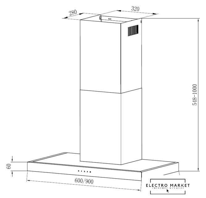 конструкция наклонная, монтаж настенный, ширина 89 см, управление электронное/кнопочное, производительность мотора 700 м³/ч, цвет бежевый/белый