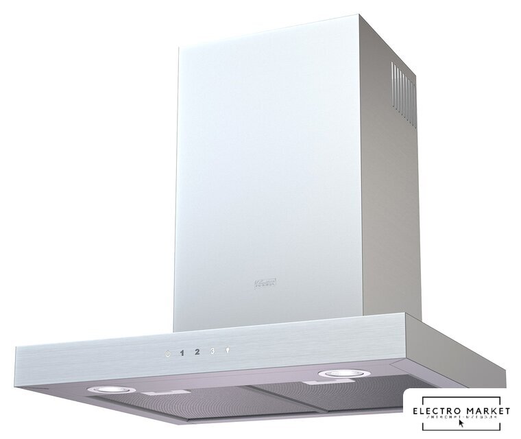 конструкция наклонная, монтаж настенный, ширина 60 см, управление сенсорное, производительность вытяжки 608 м³/ч, цвет белый/нержавеющая сталь