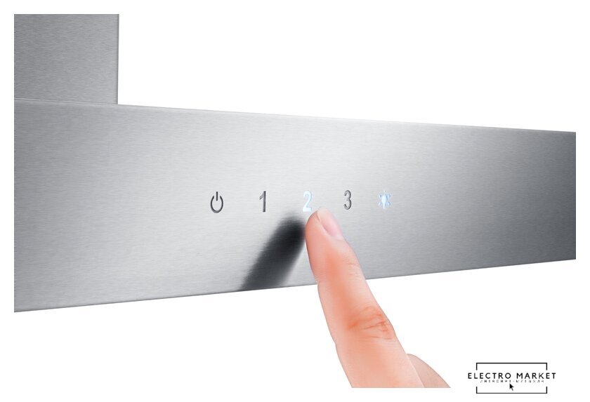 конструкция наклонная, монтаж настенный, ширина 59.5 см, управление сенсорное/жестами, производительность вытяжки 850 м³/ч, цвет черный