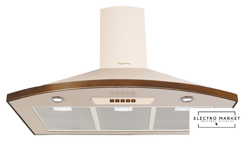 конструкция купольная, монтаж настенный, ширина 59.8 см, управление механическое/кнопочное, производительность мотора 800 м³/ч, цвет слоновая кость