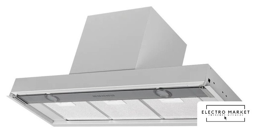конструкция телескопическая, монтаж для встраивания, управление электронное/кнопочное, производительность вытяжки 480 м³/ч, производительность мотора 900 м³/ч, ширина 59.8 см