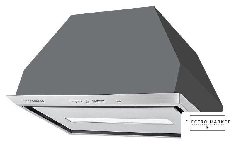 конструкция Т-образная, монтаж настенный, ширина 60 см, управление сенсорное, производительность вытяжки 950 м³/ч, цвет нержавеющая сталь/черный